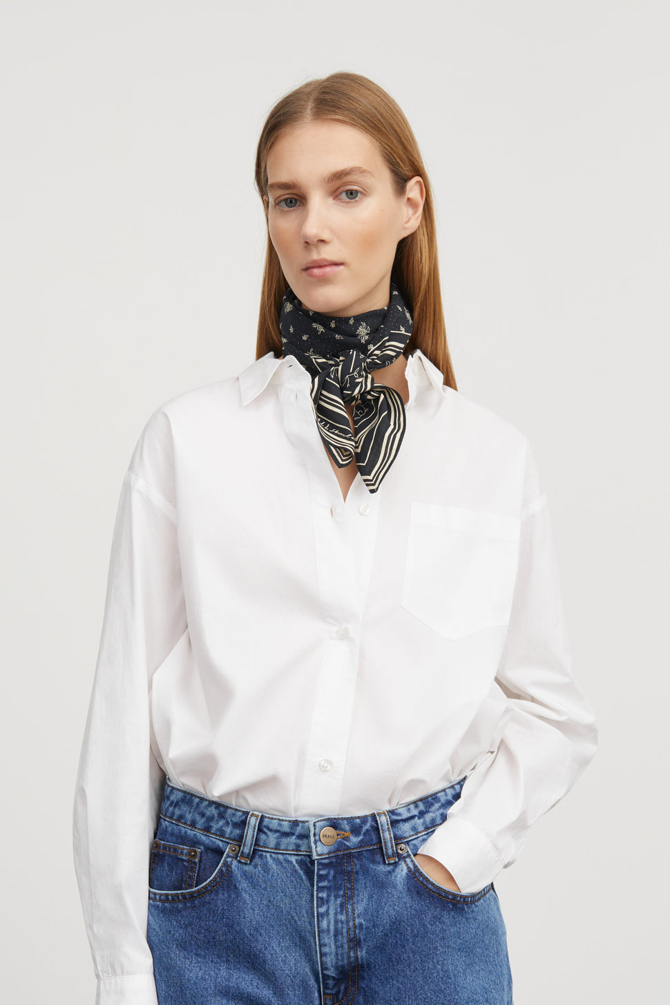 Classic Scarf 55x55 Light Cream/Blue