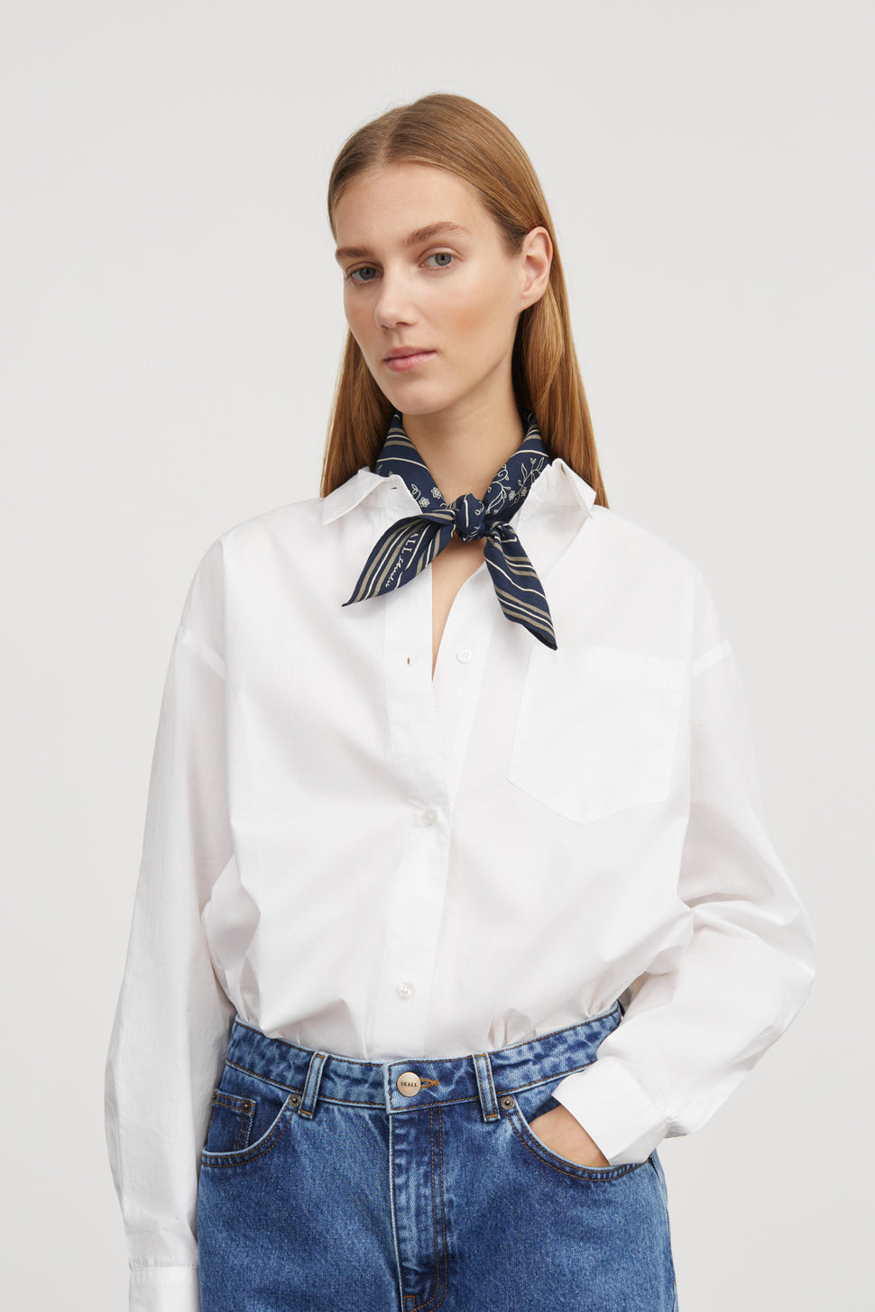 Classic Scarf 90x90 Light Cream/Blue